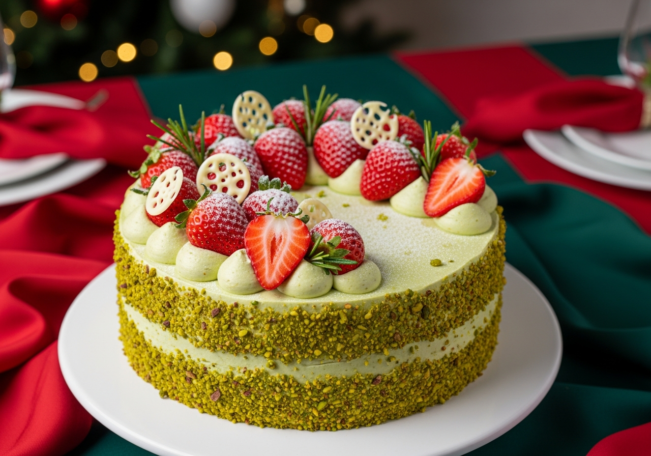 - クリスマスカラーの苺とピスタチオクリームで仕上げたショートケーキです。みんなでシェアできる18cmサイズ。苺の爽やかな酸味と濃厚な味わいをお楽しみください。