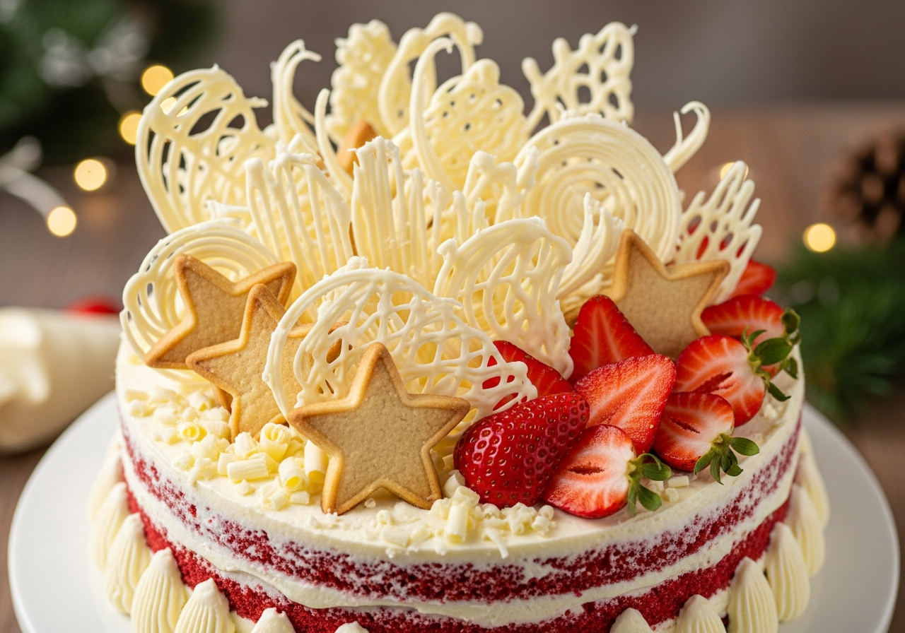 - 特徴: しっとりと焼き上げたスポンジに、口どけの良い生クリームと甘酸っぱい苺を挟み込みました。軽やかな生クリームと、みずみずしい苺の風味が絶妙なバランスを奏でます。仕上げにはホワイトチョコレートの装飾と、星型クッキーを重ねたツリーをあしらい、クリスマスらしい華やぎを演出。世代を問わず親しまれるシンプルかつ上質なクリスマスケーキです。