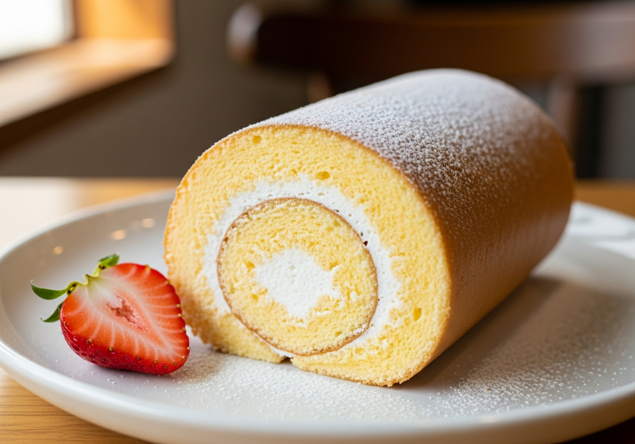 - シンプルなクリームの配合: 中に巻かれた生クリームは、甘すぎず、ミルクのコクがしっかりと感じられる配合です。このクリームが、しっとりとしたスポンジと一体となることで、口の中で最高のハーモニーを生み出します。
