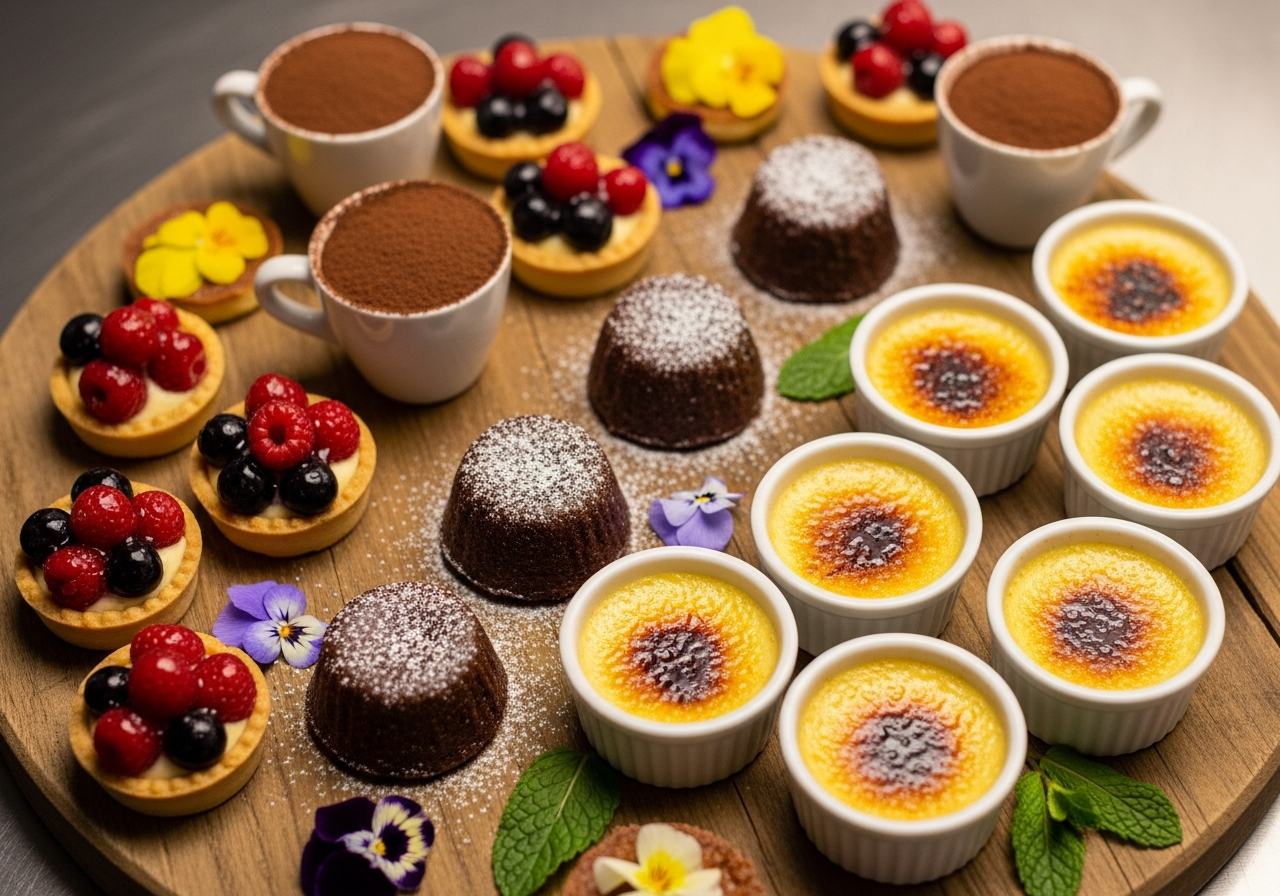 - 濃厚系(プリン、ショコラ、ティラミス)とさっぱり系(ゼリー、ソフトクリーム)を混ぜることで、最後まで飽きずに楽しめます。