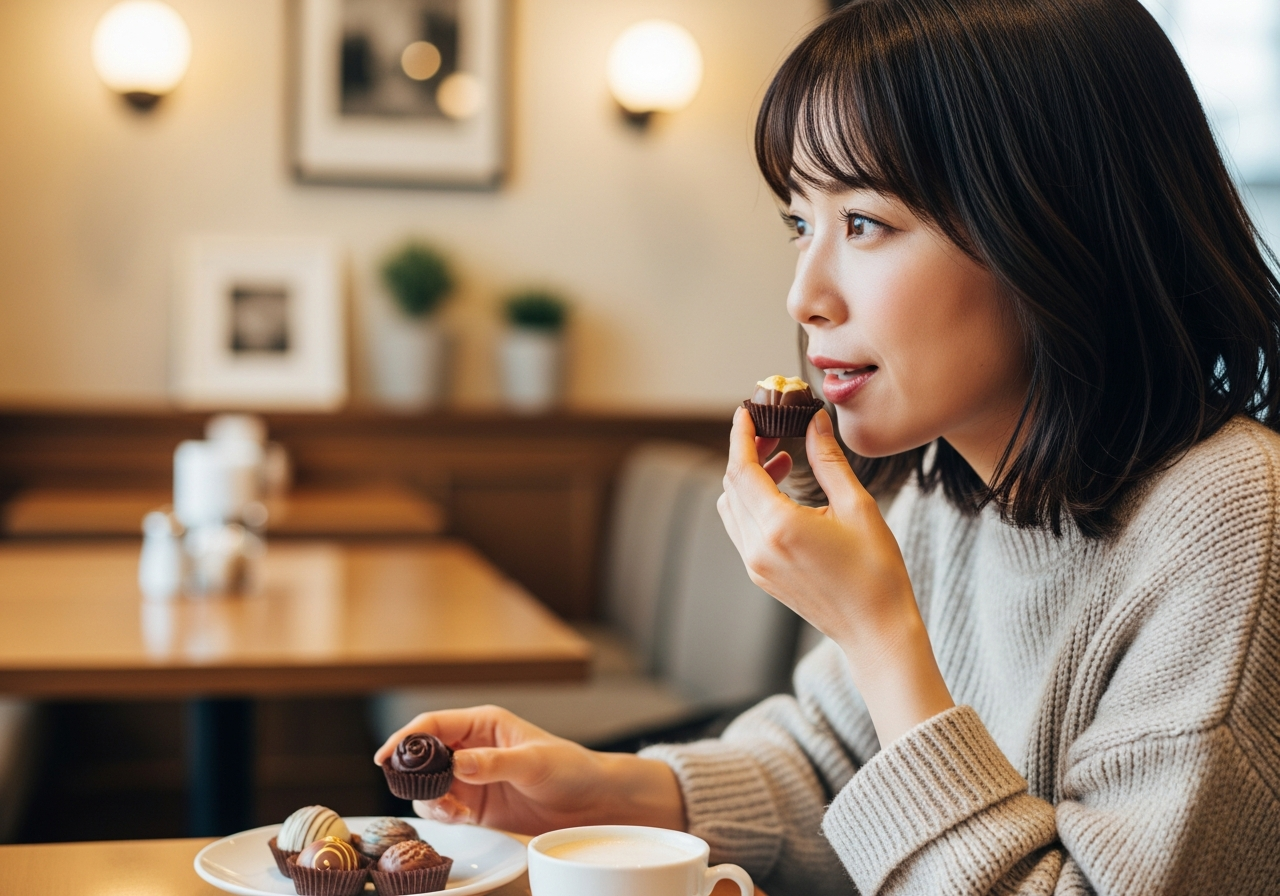 - マリアージュの妙: コーヒーはもちろん、シンプルにスパークリングウォーターと合わせることで、濃厚な甘さの後がさっぱりと洗い流され、次のもう一粒へと誘われます。