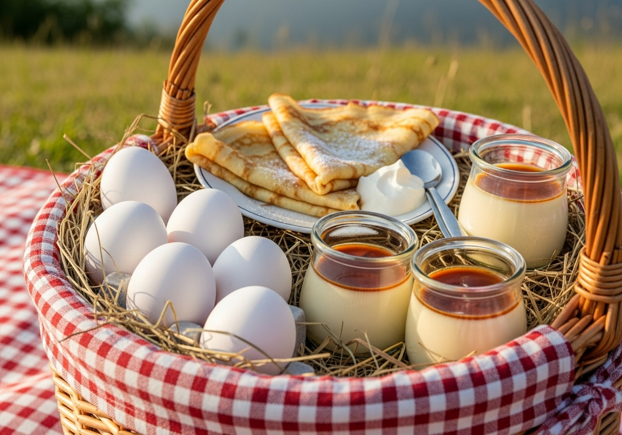 - 召し上がれ:完成したトロトロのプリン液と、もちもちのクレープ生地を一緒に味わいます。