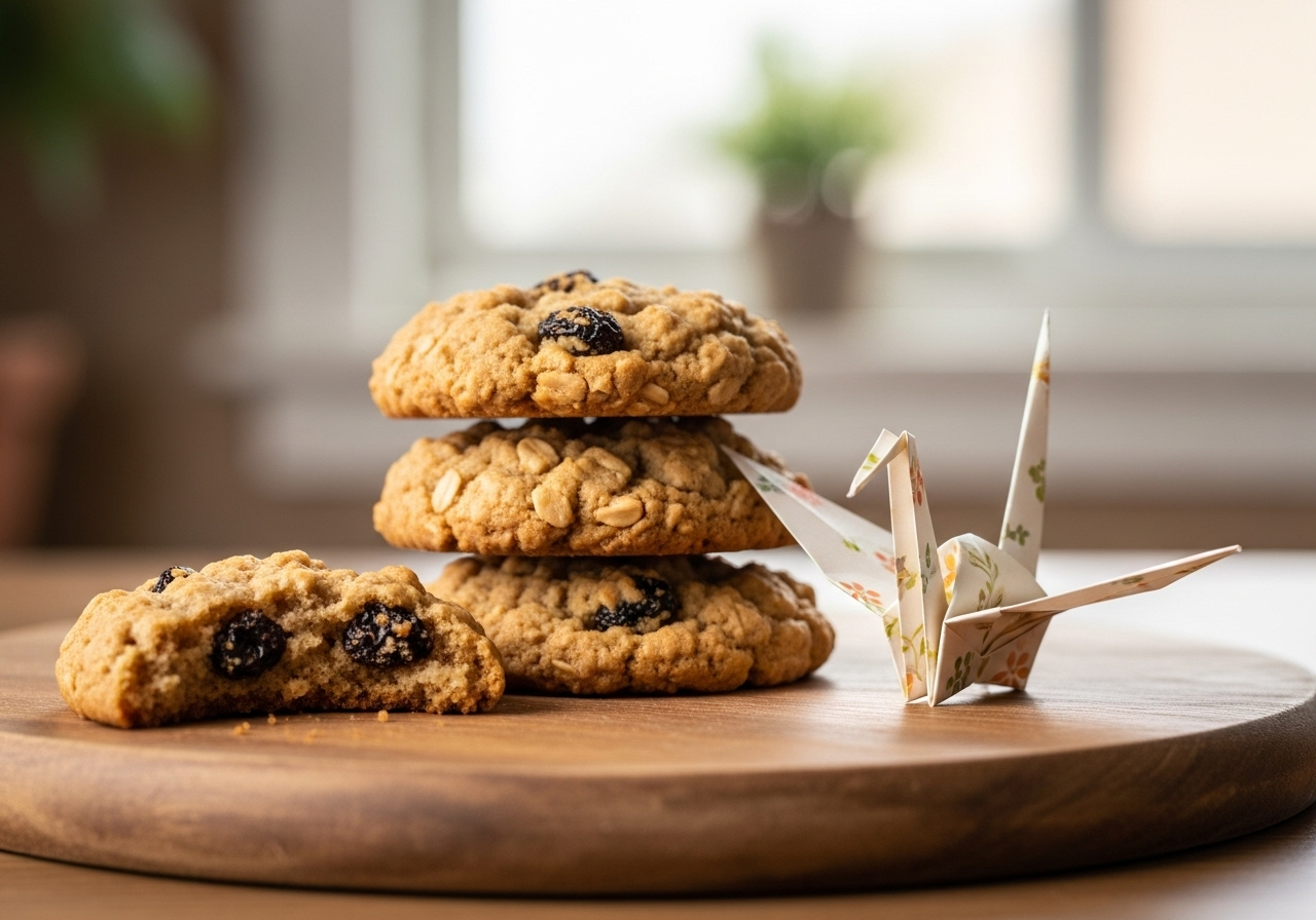 通常のからす麦クッキーがシンプルで素朴な美味しさを追求しているのに対し、「おりづるクッキー」は、より複雑で深みのある贅沢な風味を追求しています。
