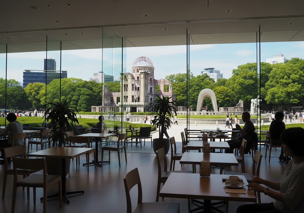- 最高のロケーション: 平和記念公園を目の前にしたガラス張りの空間は、休憩スポットとしての居心地の良さを高めています。